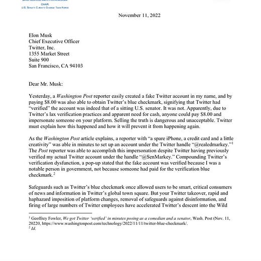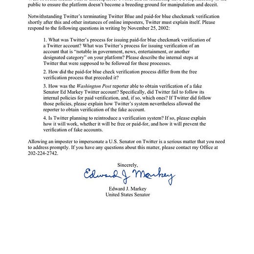 Meanwhile, also today, Senator Ed Markey raised major concerns about the holes in Twitter’s new verification system.